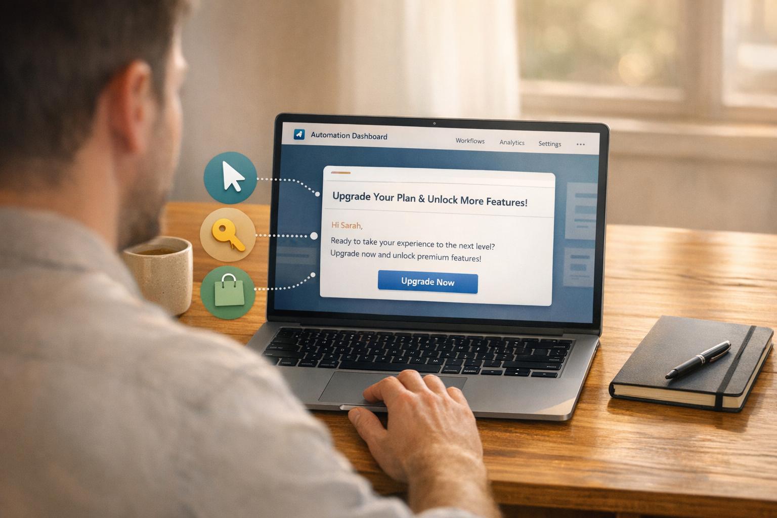 The key is combining these triggers into a cohesive strategy. Use clicks to detect intent and inform timely sales outreach. Monitor logins to initiate onboarding flows, guiding users to their "First Value Experience" - that moment when they see the true benefit of your product. For purchases or usage limits, set triggers to encourage upgrades when users reach 80% of their storage or feature capacity. This integrated approach creates a seamless workflow, ensuring every trigger aligns with your broader goals.